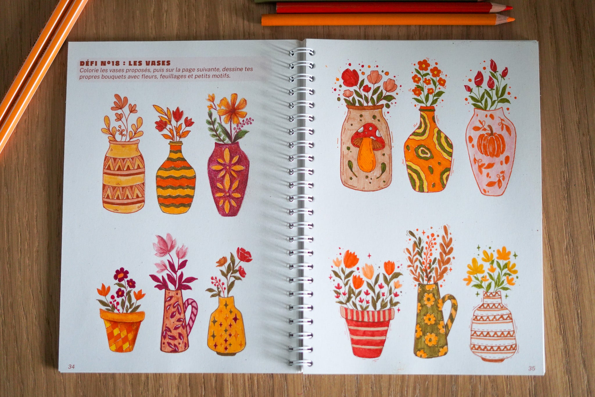 Ici, je partage les pages terminées de mes carnets pour vous donner un aperçu de tout ce qu’il est possible de créer. Vous y trouverez des exemples colorés, des idées originales, ainsi que mes nuanciers pour vous aider à choisir vos teintes et à explorer de nouvelles harmonies.