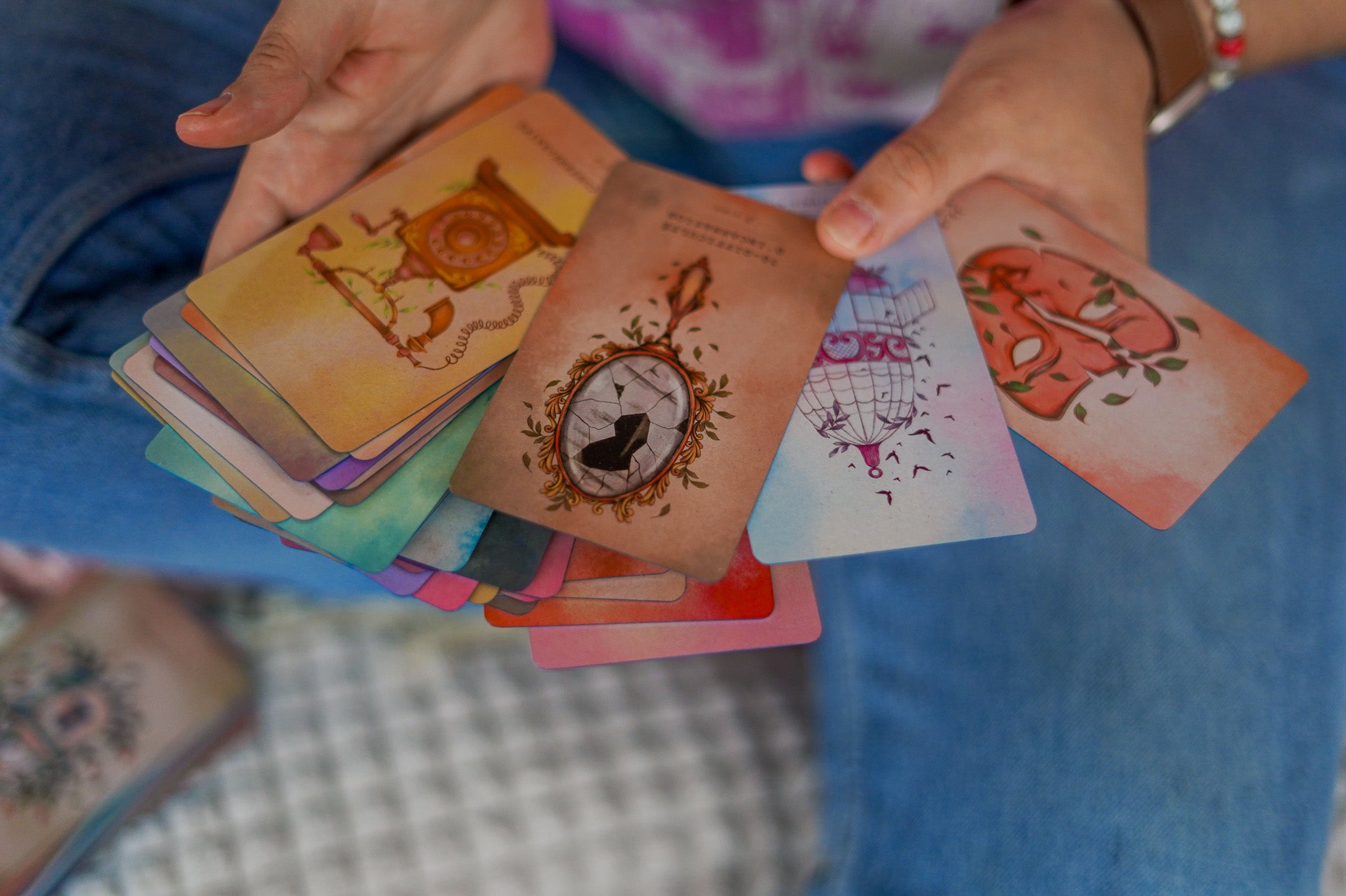 En 2022, une belle rencontre a changé mon parcours créatif : celle de Lorelène Fantino, médium (@Oracle_avenir). Ensemble, nous avons donné vie à une série d’oracles et à un tarot, mêlant son univers intuitif à mes illustrations.